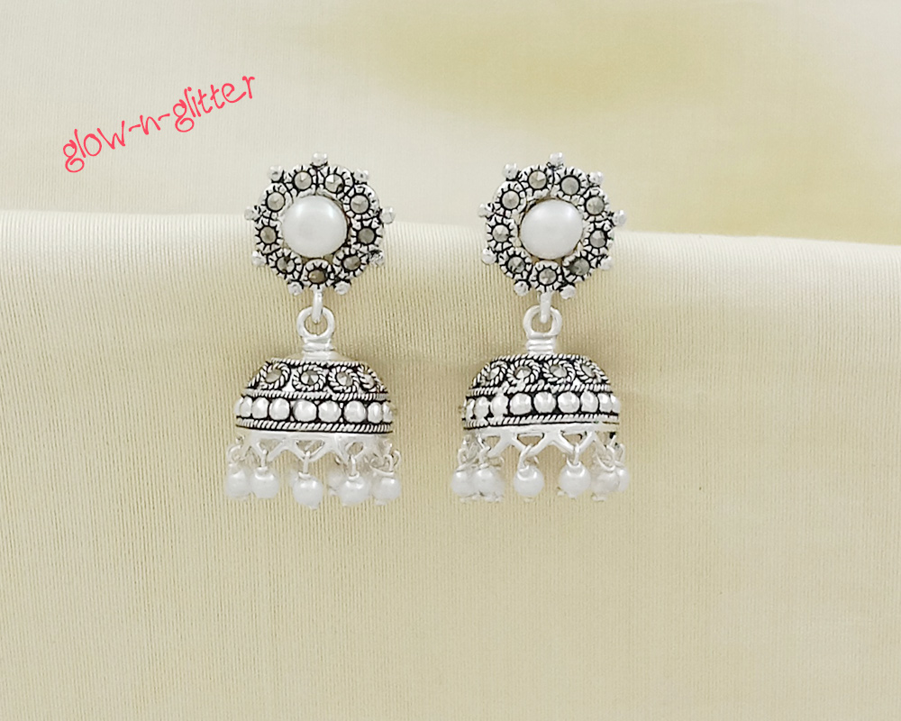 STERLING SILVER & PEARL JHUMKA EARRINGS