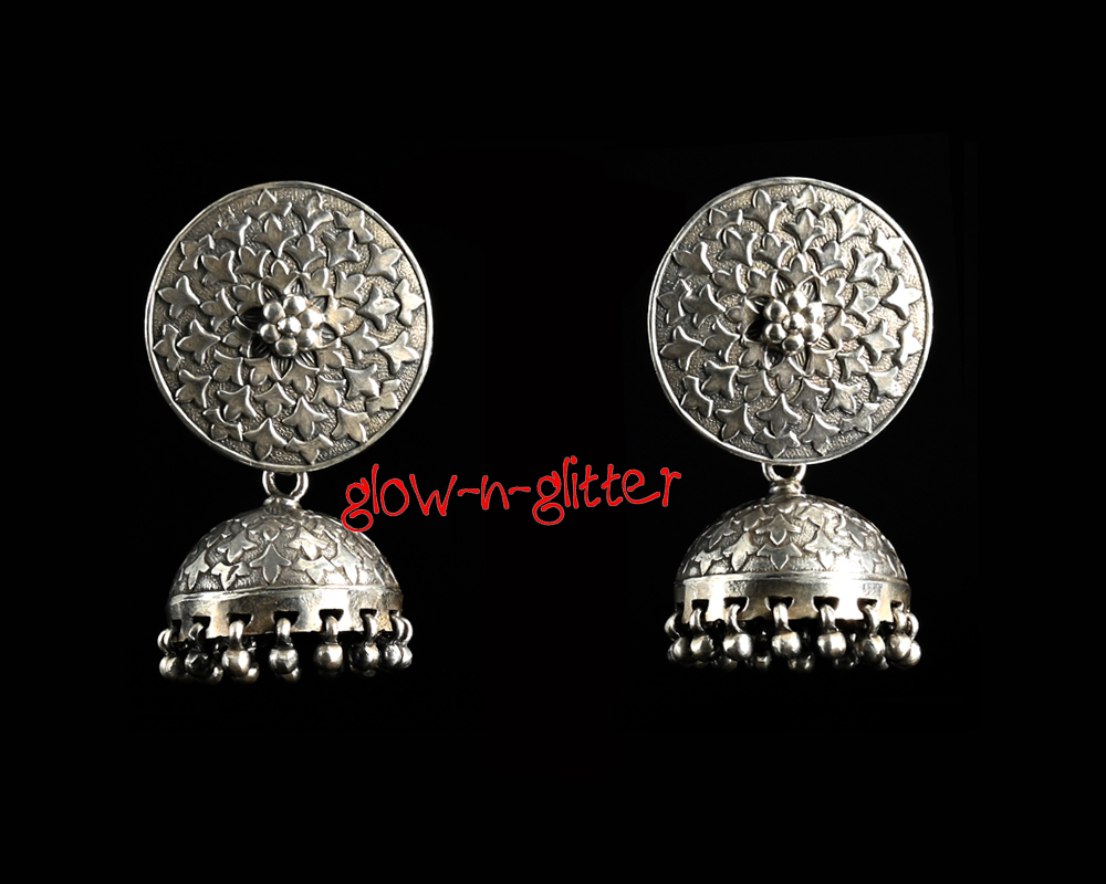 STERLING SILVER EMBOSSED LILLY JHUMKA EARRINGS