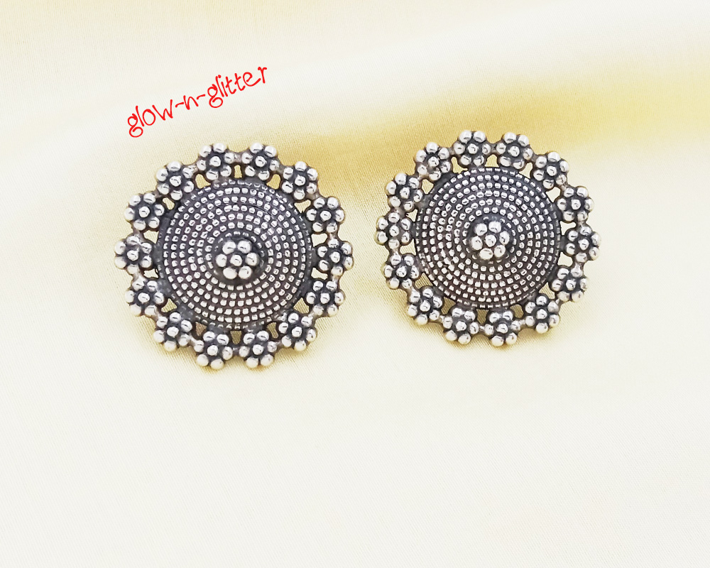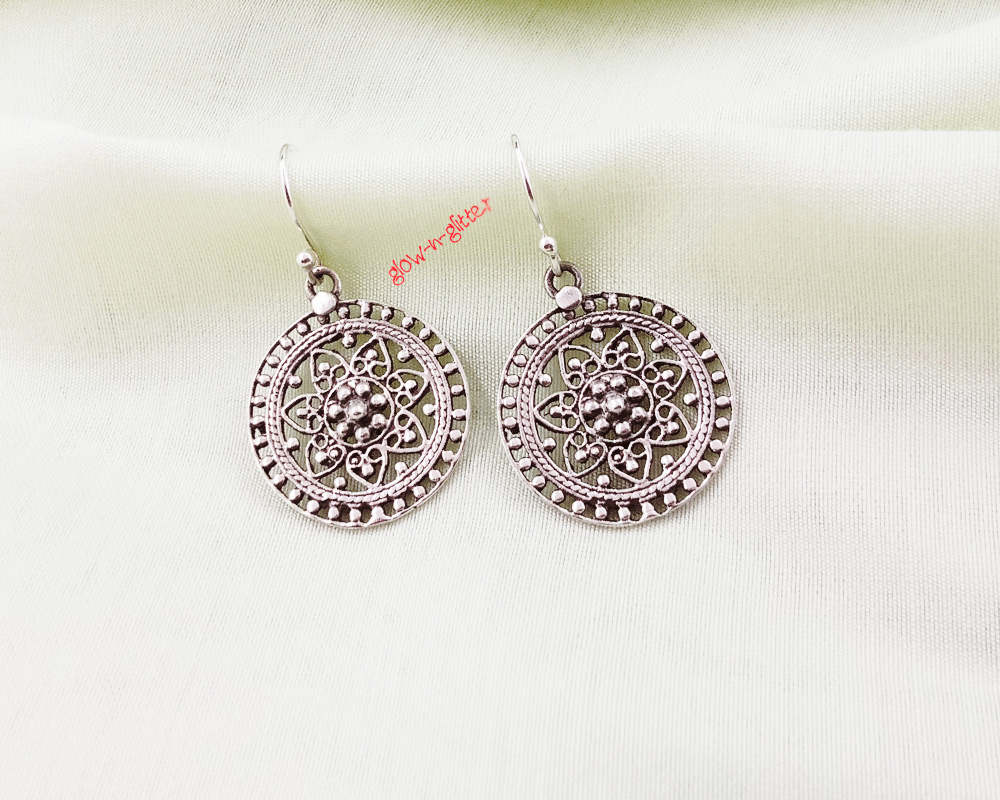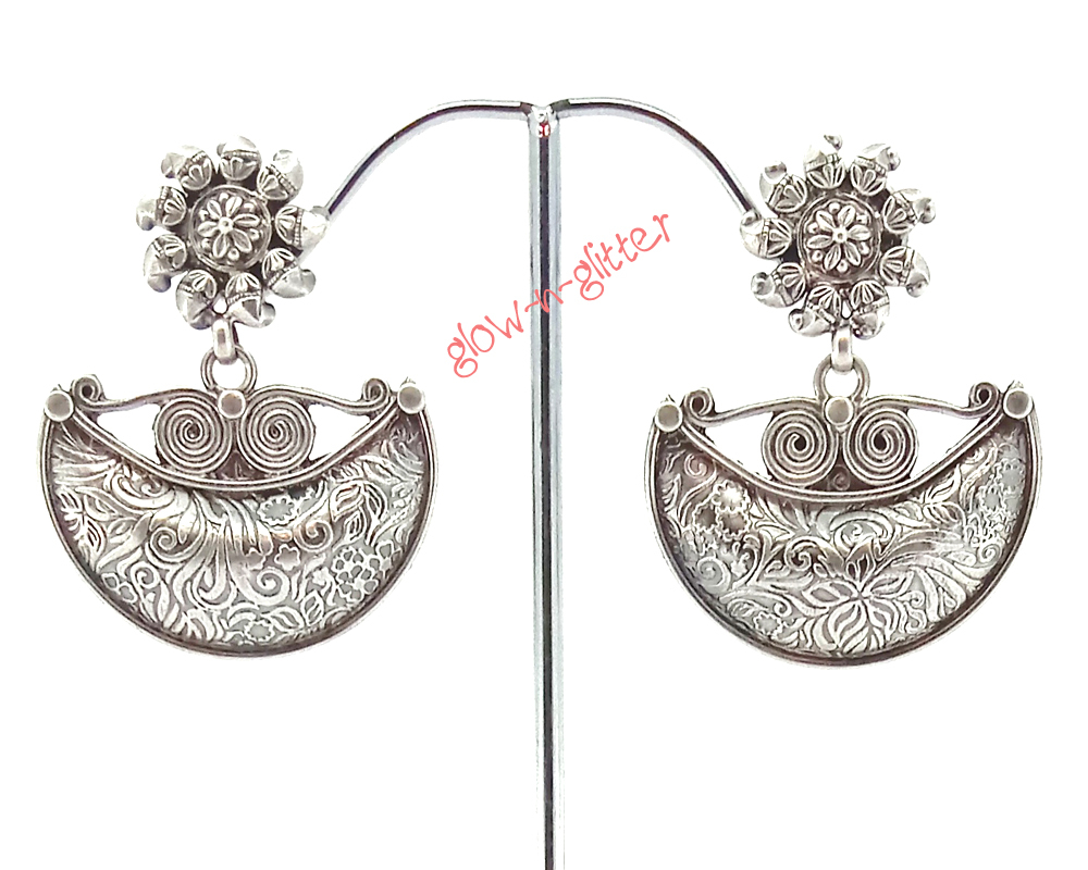 STERLING SILVER EMBOSSED CHANDBALI EARRINGS
