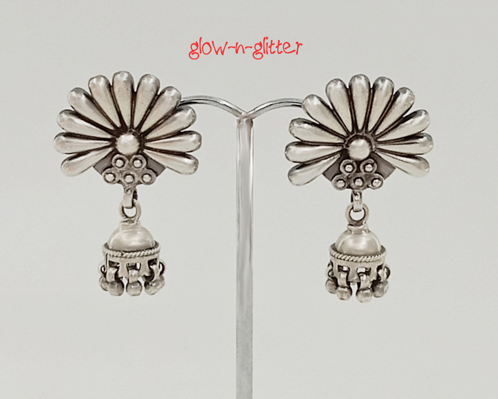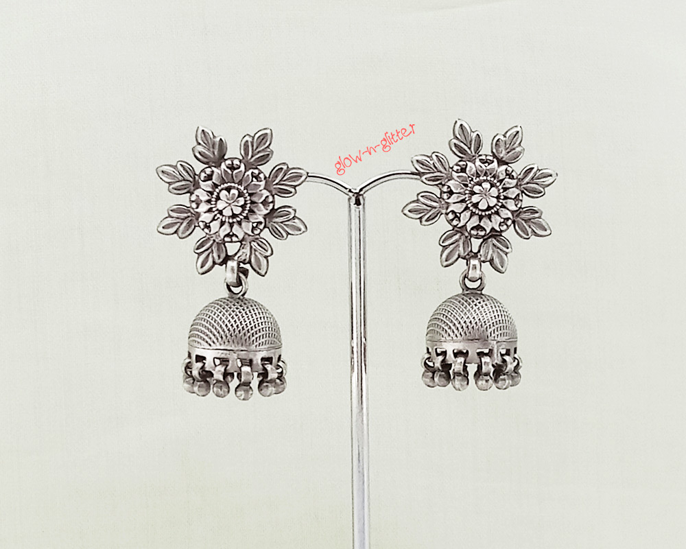 STERLING SILVER FLOWER JHUMKA EARRINGS