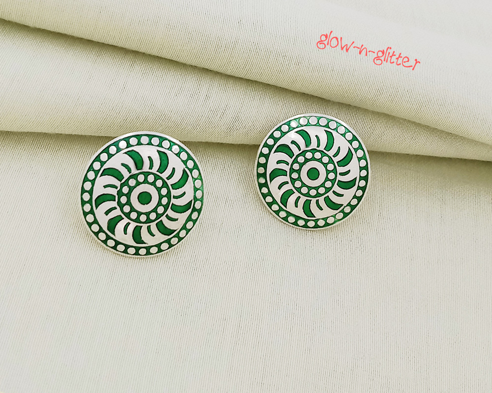 STERLING SILVER GREEN MEENAKARI EARRINGS