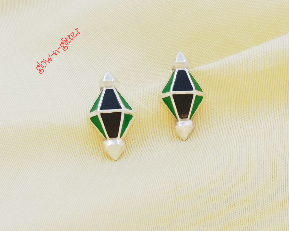 STERLING SILVER GREEN & BLACK DHOLKI EARRINGS