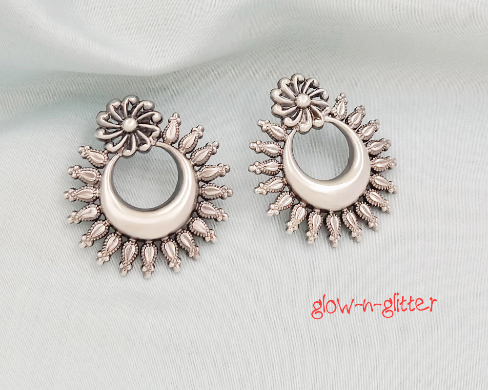 STERLING SILVER FLORAL CHANDBALI EARRINGS