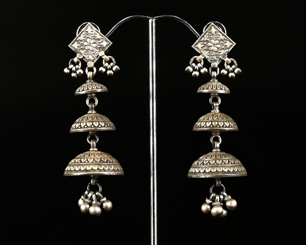 STERLING SILVER TIERED JHUMKA EARRINGS