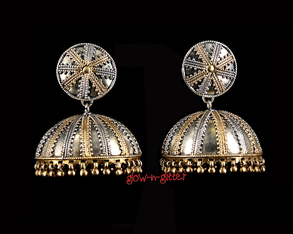 STERLING SILVER TWO TONE STATEMENT JHUMKA EARRINGS