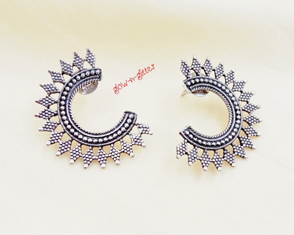 STERLING SILVER TRIBAL SEMI HOOP EARRINGS
