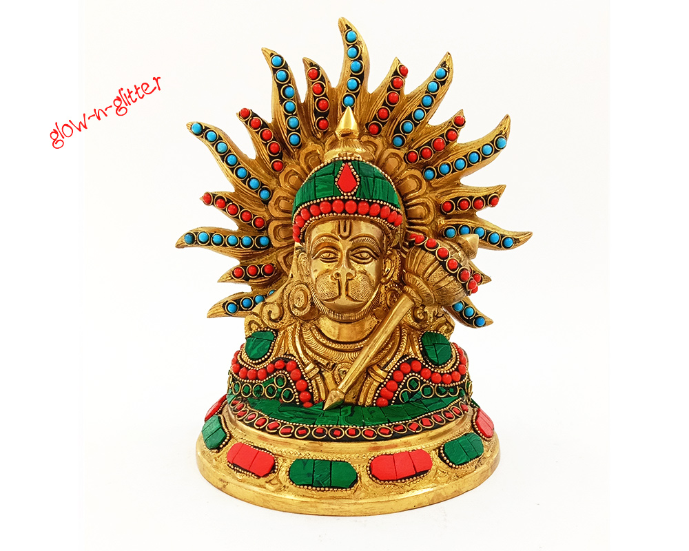 BRASS AND SEMI PRECIOUS STONE HANUMAN JI