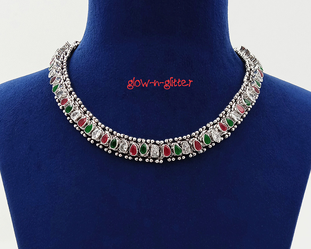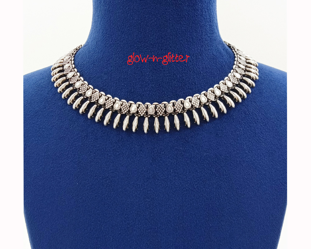 STERLING SILVER RAINDROP JHALOR NECKLACE