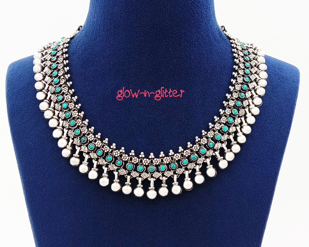 STERLING SILVER TURQUOISE & DROPS NECKLACE
