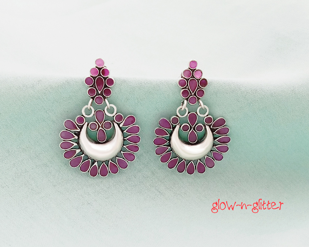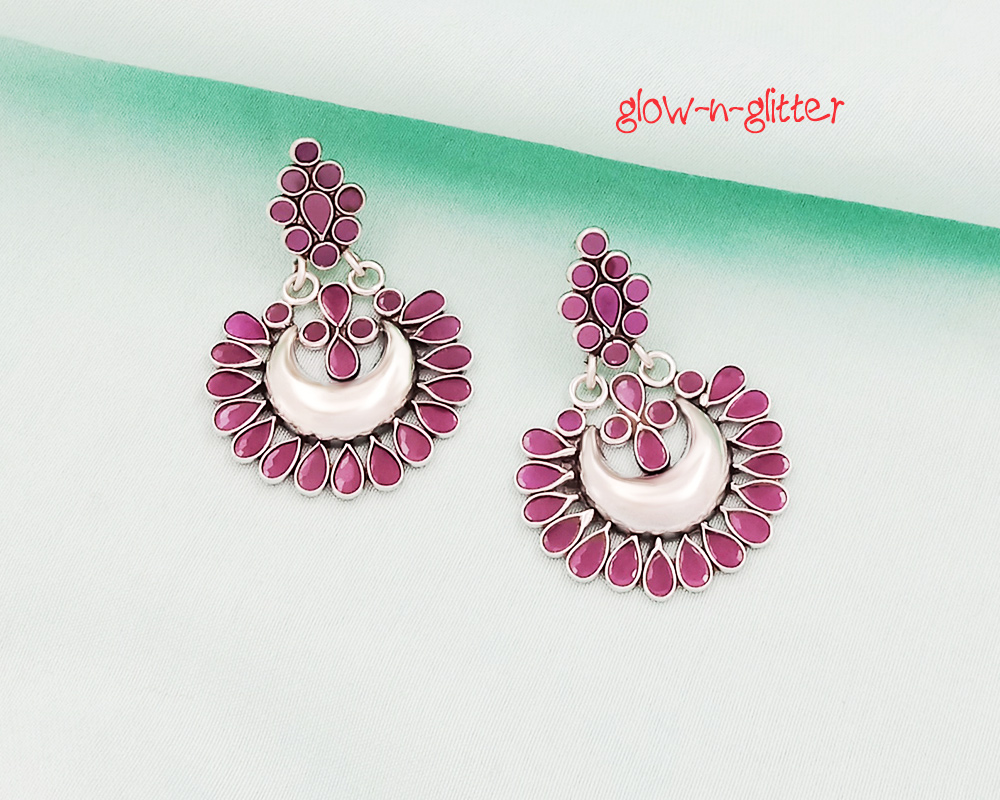 STERLING SILVER RED POLKI CHANDBALI EARRINGS