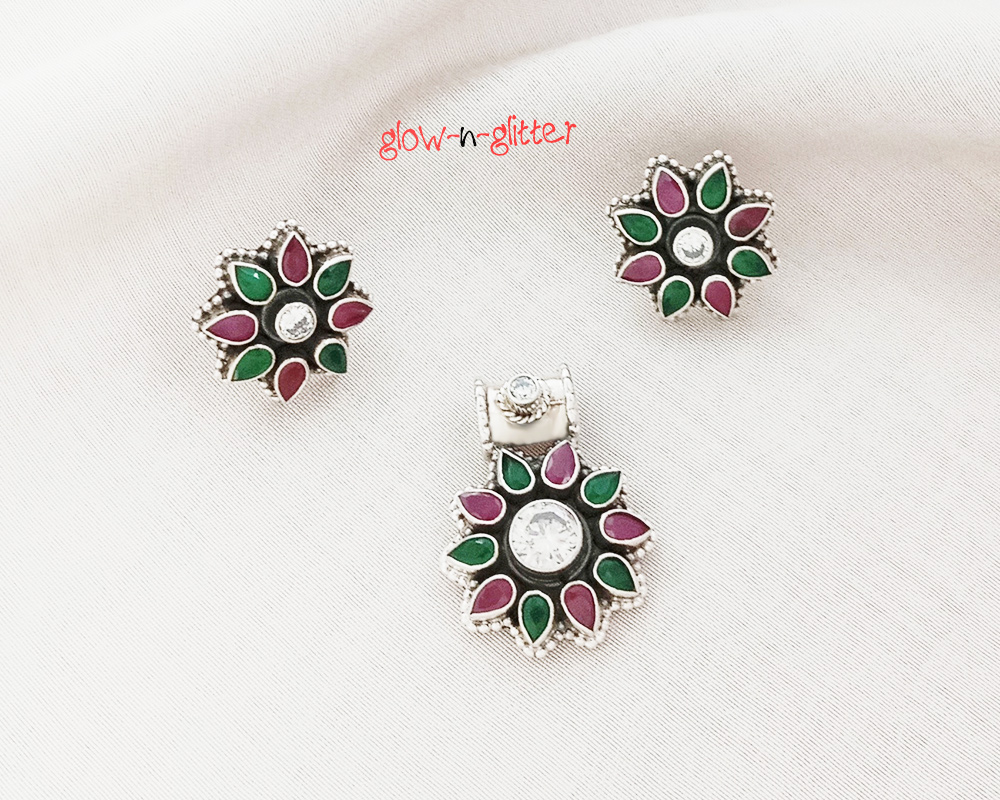 STERLING SILVER CUT STONE ONYX PENDANT EARRING SET