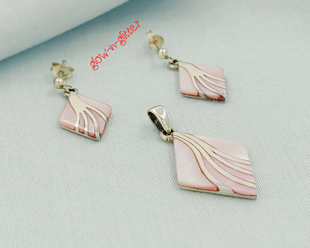 STERLING SILVER MOTHER OF PEARL PENDANT EARRING SET