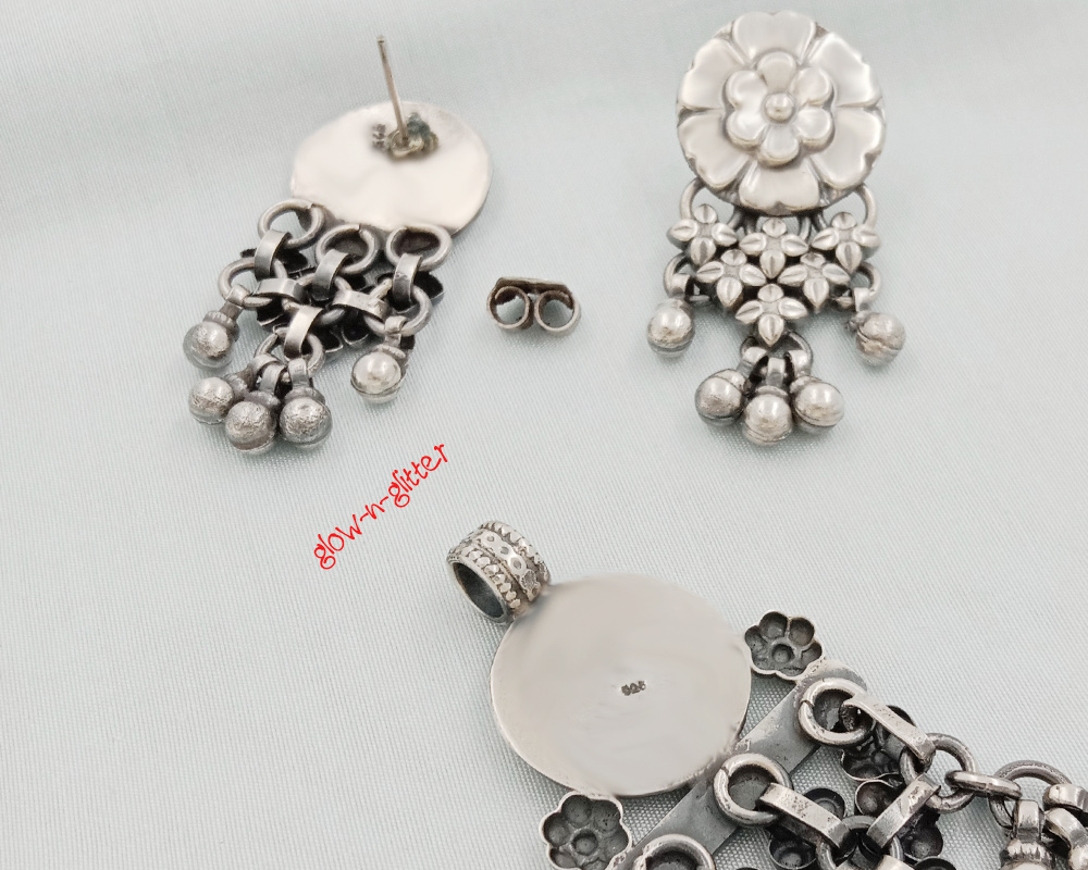 STERLING SILVER BLOSSOM PENDANT EARRING SET