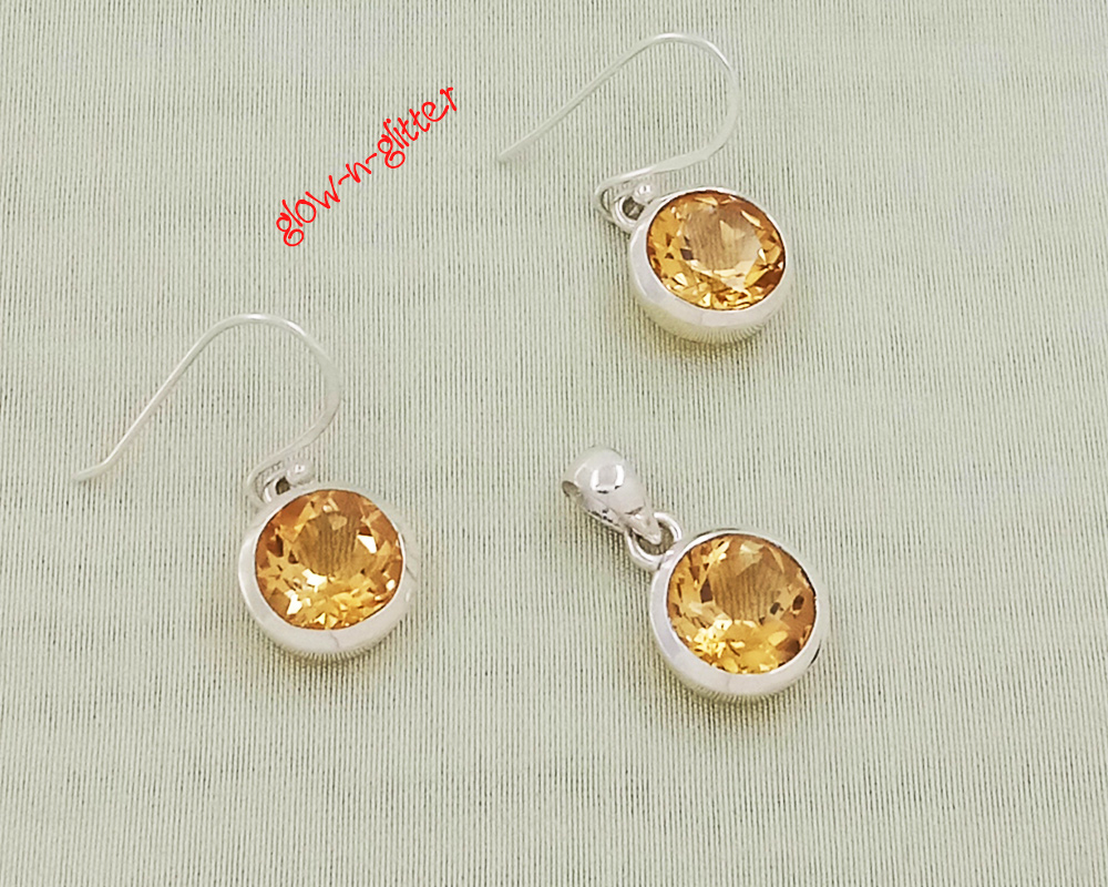 STERLING SILVER & CITRINE PENDANT EARRING SET