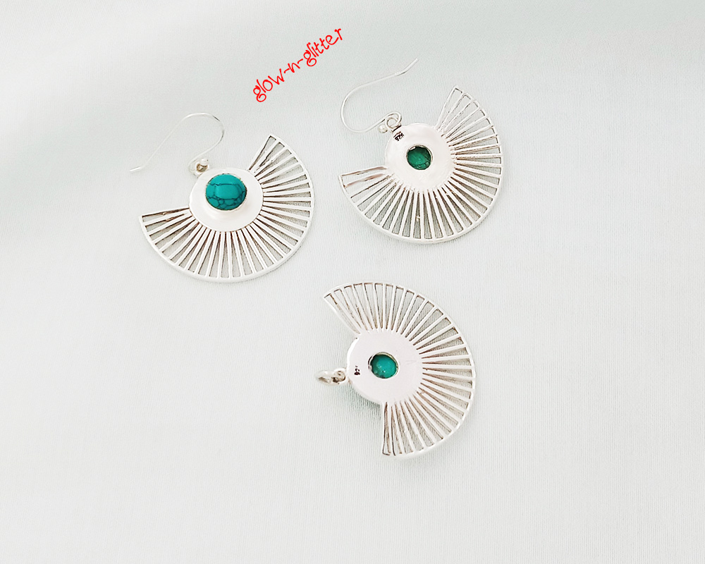 STERLING SILVER & TURQUOISE RAYS PENDANT EARRING SET