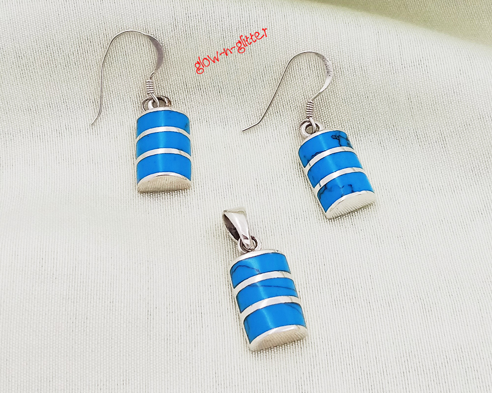 STERLING SILVER & TURQUOISE PENDANT EARRING SET