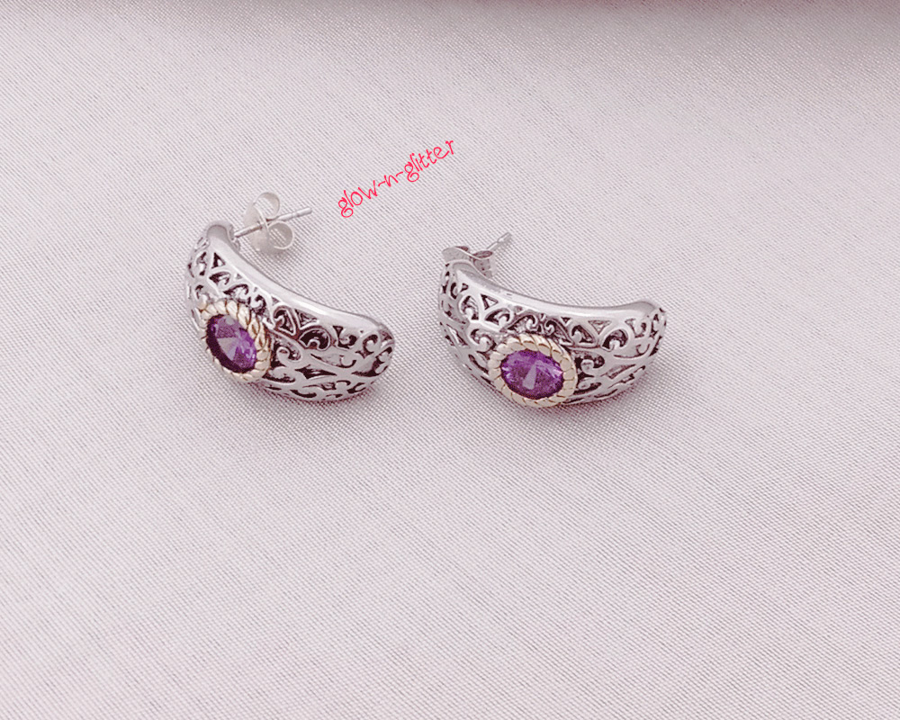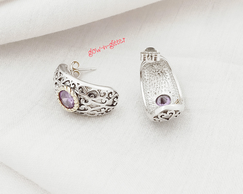 STERLING SILVER AMETHYST FILIGREE EARRINGS