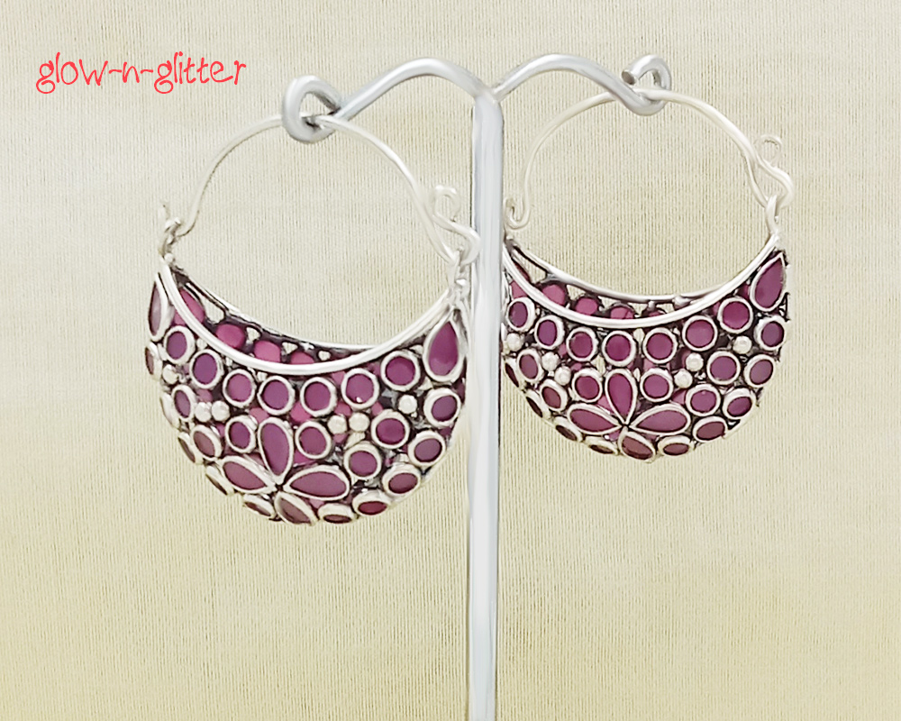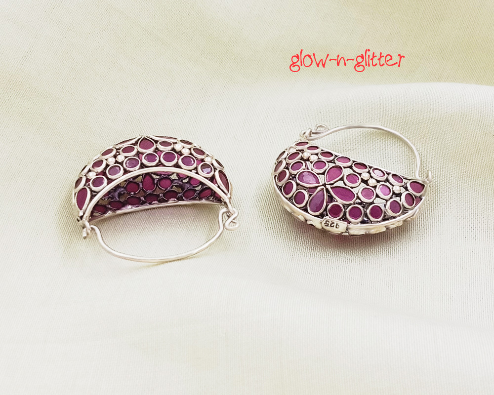 STERLING SILVER BASKET RED POLKI EARRING