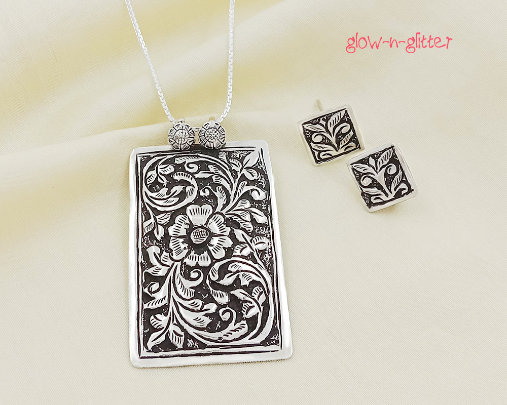 STERLING SILVER BLOSSOM CHITAI PENDANT & EARRING SET