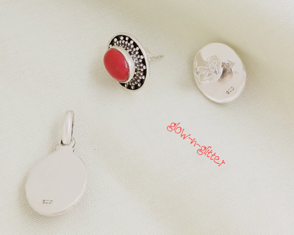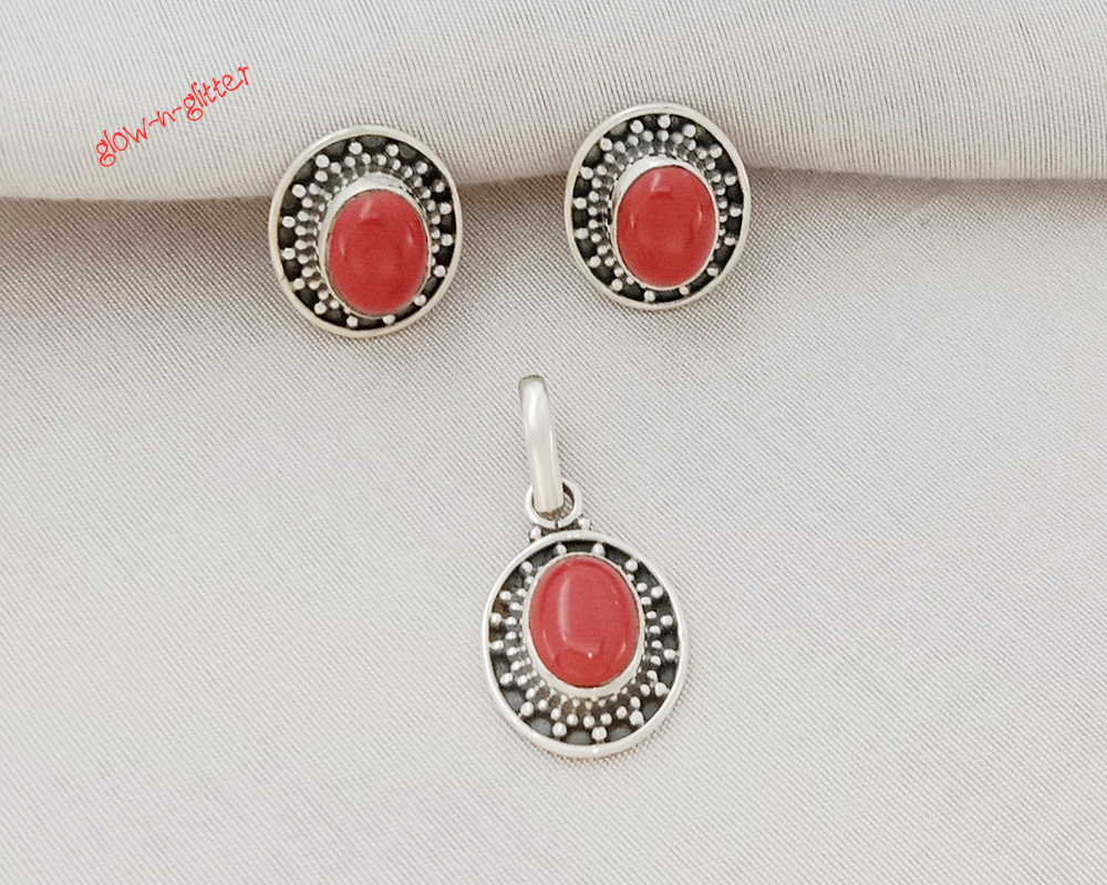 STERLING SILVER & CORAL OVAL PENDANT EARRING SET