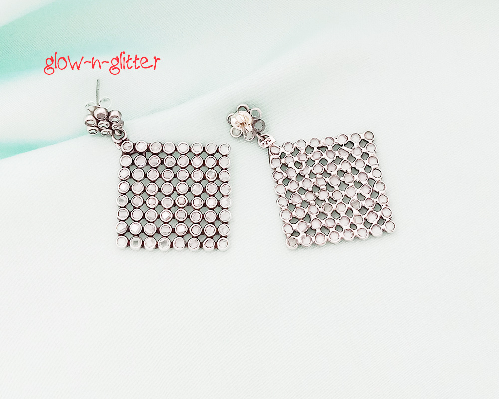 STERLING SILVER DIAMANTINE POLKI EARRINGS