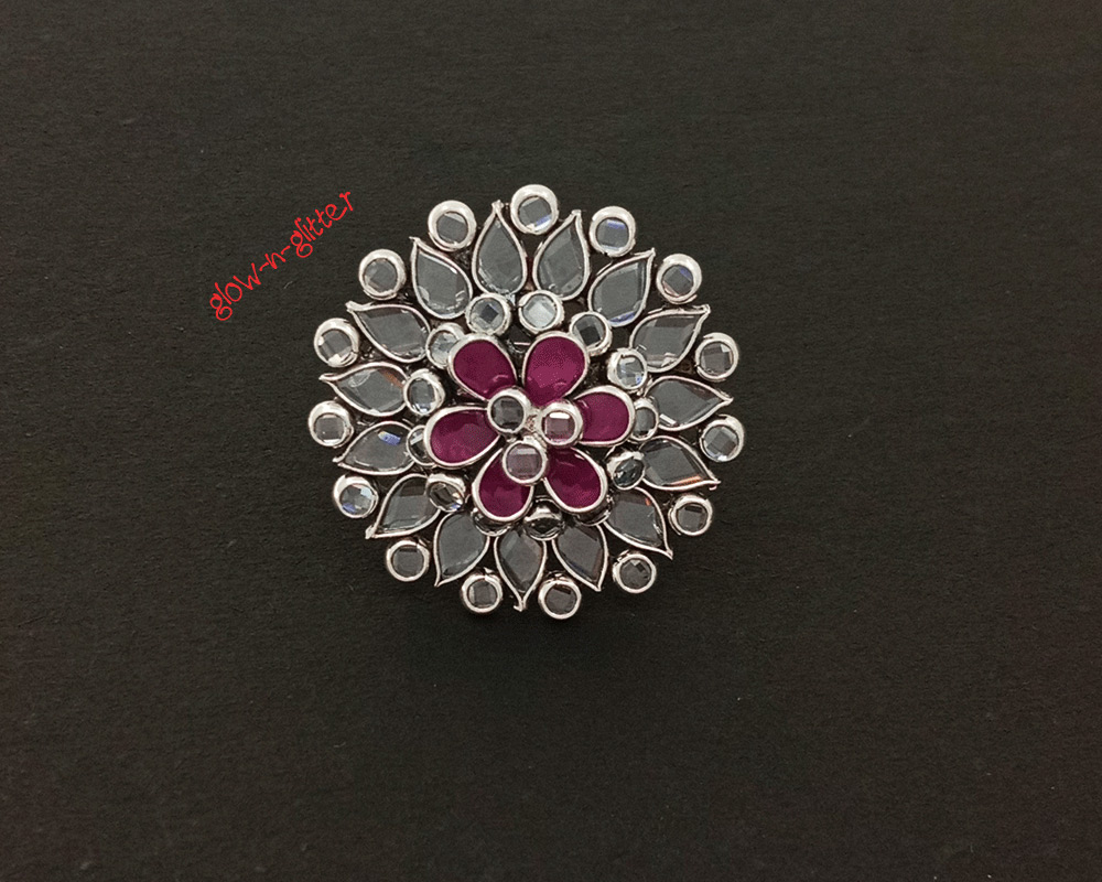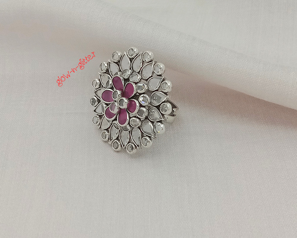 STERLING SILVER DUAL POLKI FINGER RING