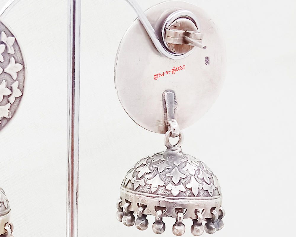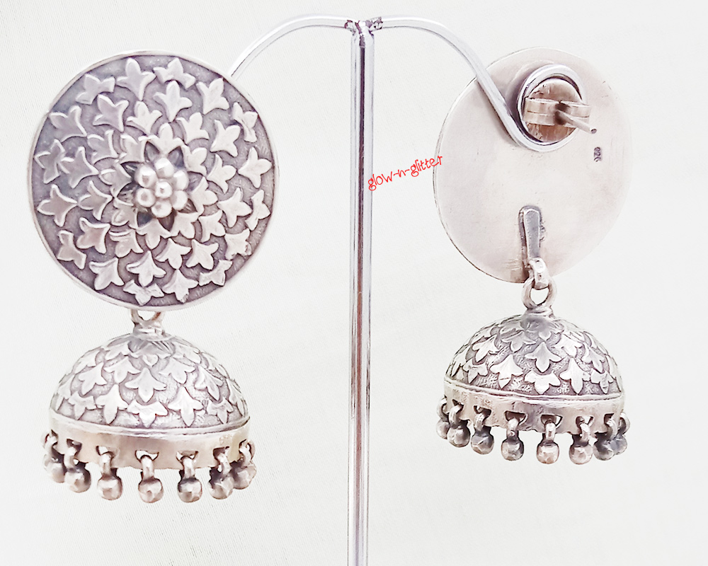 STERLING SILVER EMBOSSED LILLY JHUMKA EARRINGS