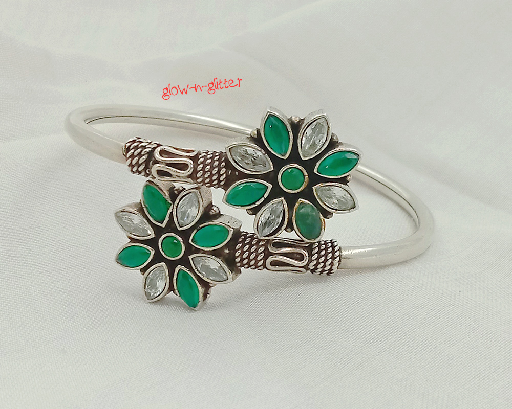 STERLING SILVER FLORAL DUO BANGLE