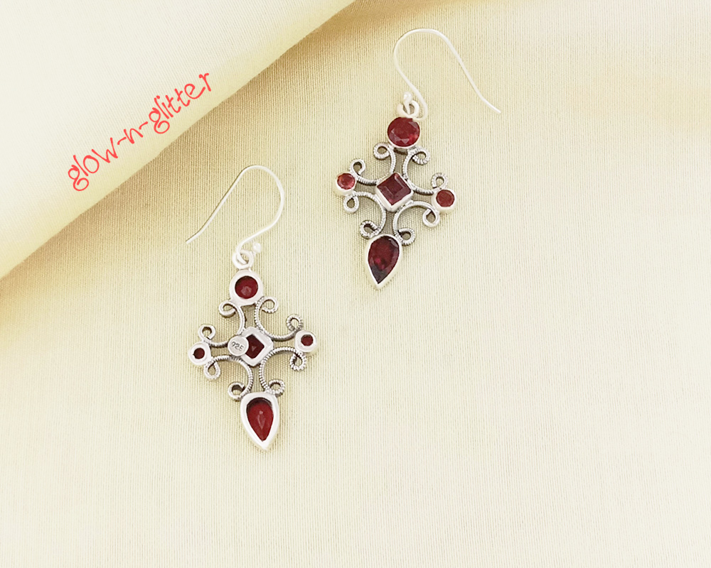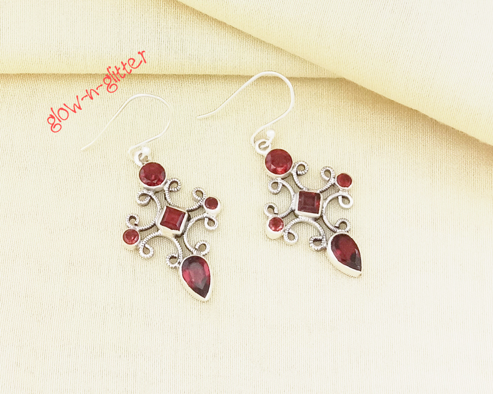 STERLING SILVER RED GEMSTONE EARRINGS