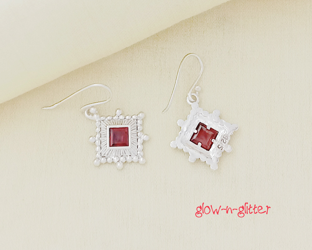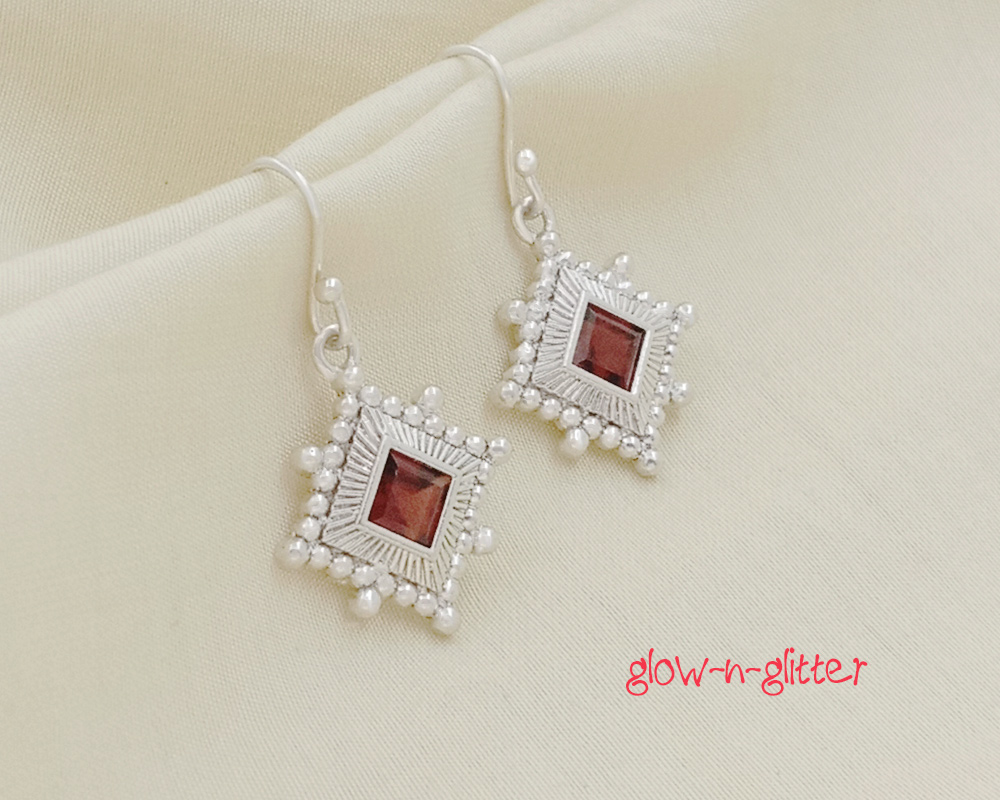 STERLING SILVER & GARNET NUGGET EARRINGS