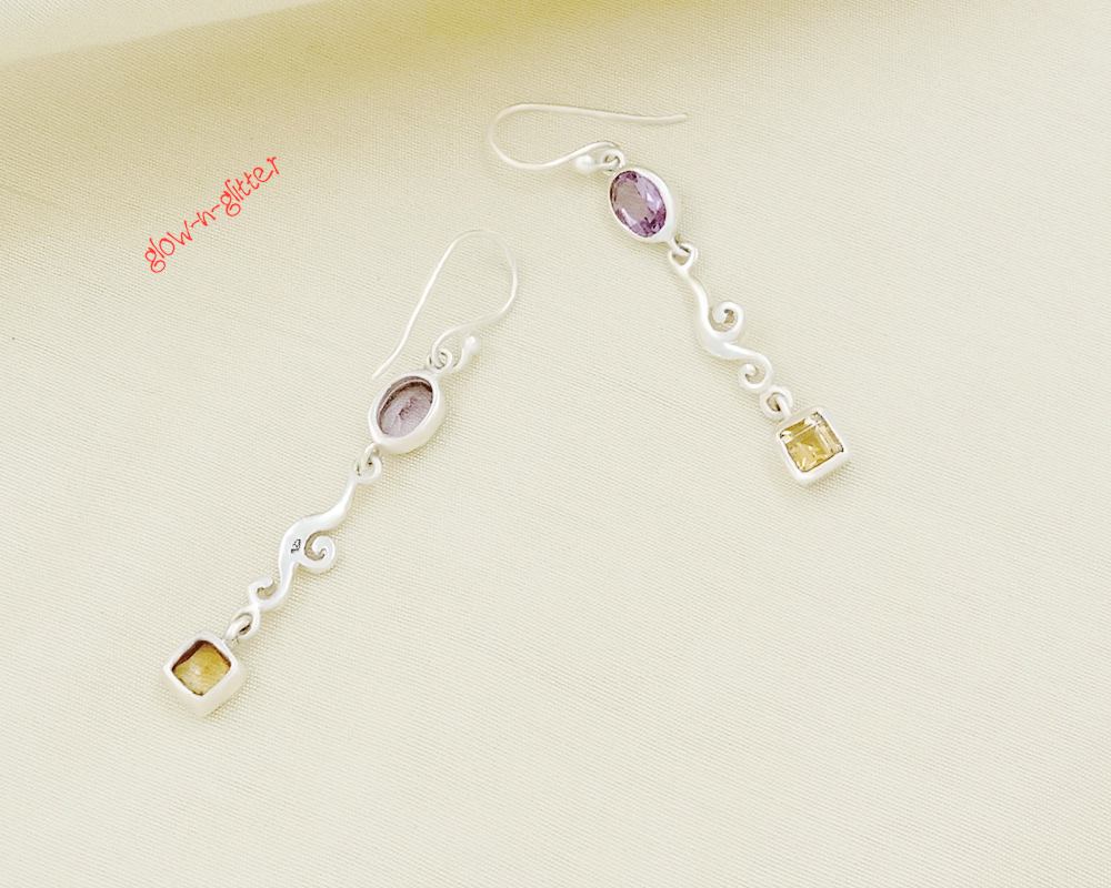 STERLING SILVER AMETHYST & CITRINE DROP EARRINGS