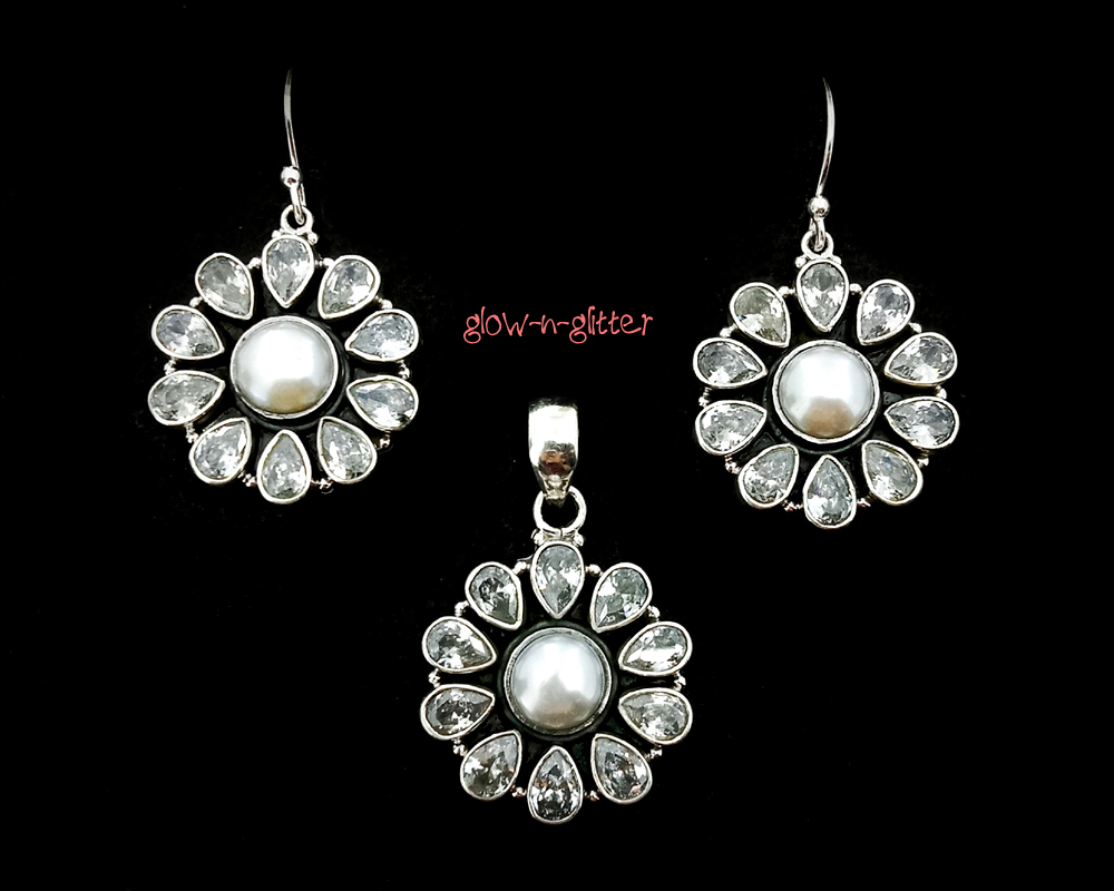 STERLING SILVER GLIMMER PENDANT EARRING SET