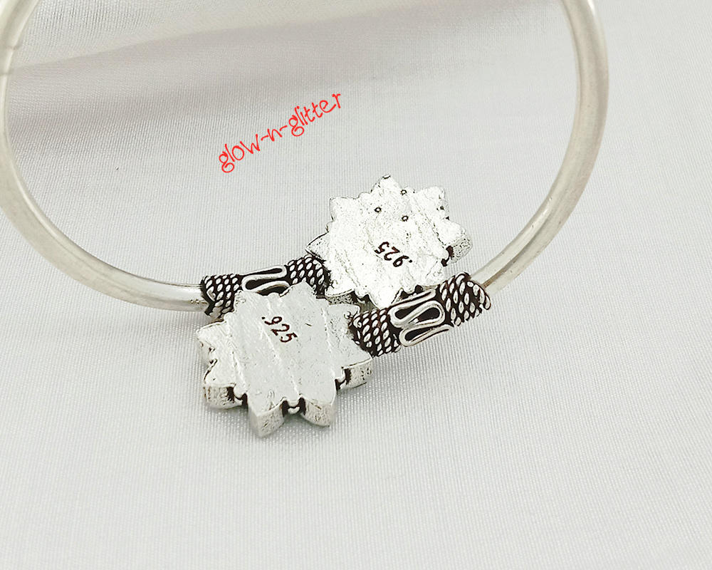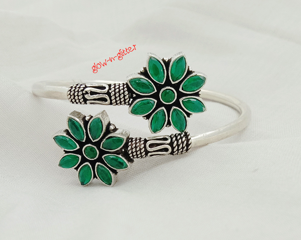 STERLING SILVER GREEN FLORAL MOTIF BANGLE