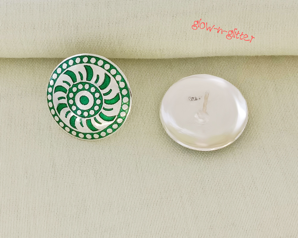 STERLING SILVER GREEN MEENAKARI EARRINGS