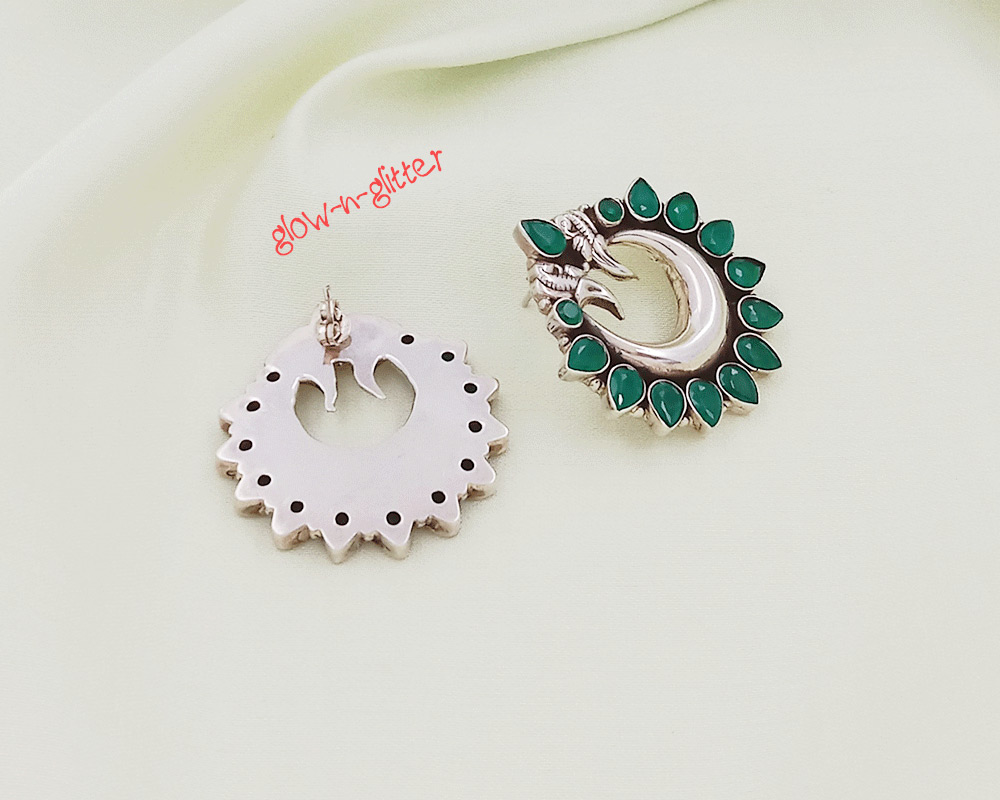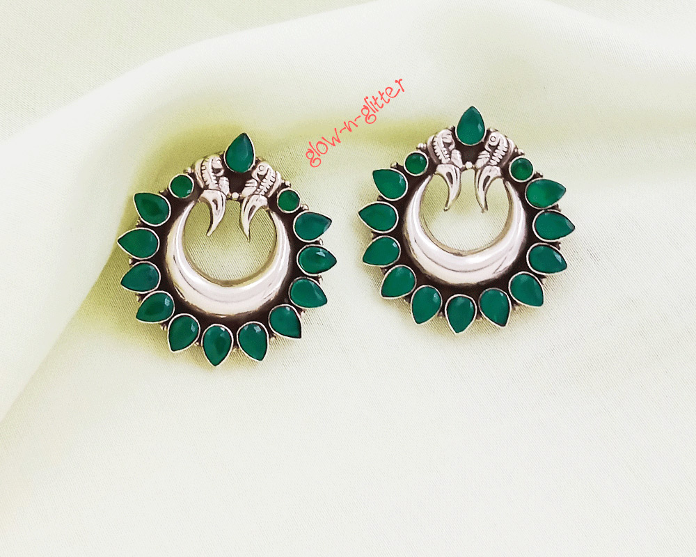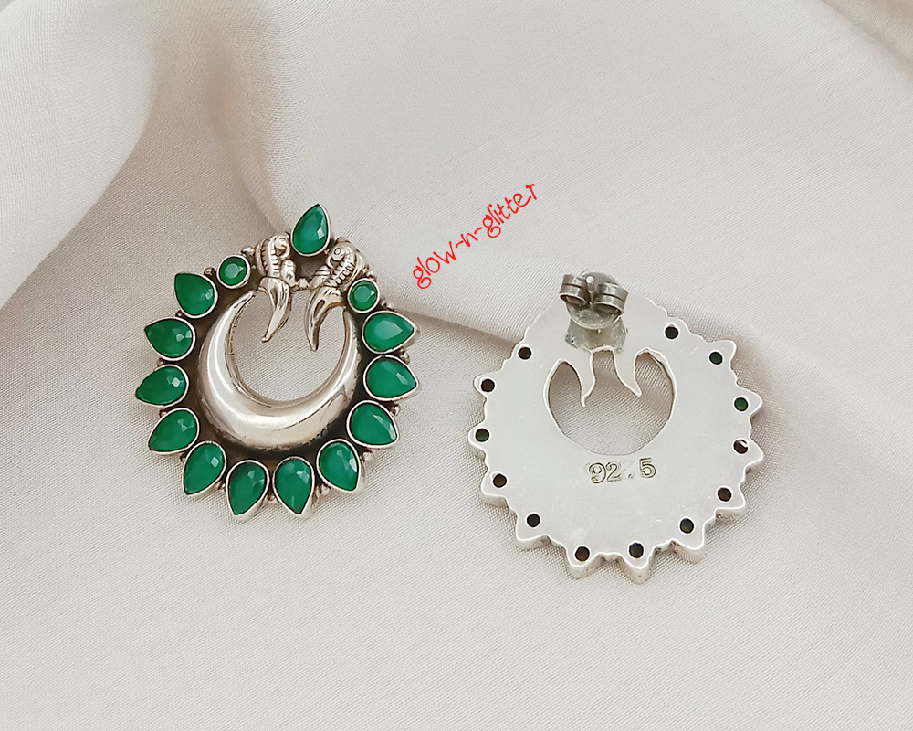 STERLING SILVER GREEN ONYX CHAND BALI EARRINGS