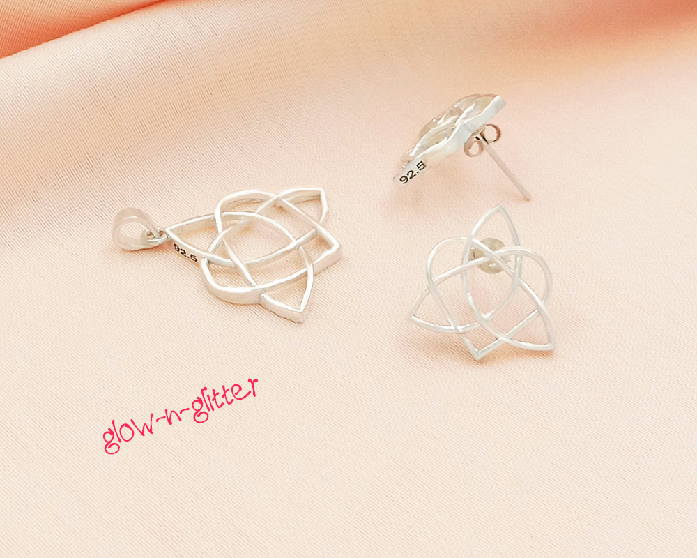 STERLING SILVER LOVE KNOT PENDANT EARRING SET