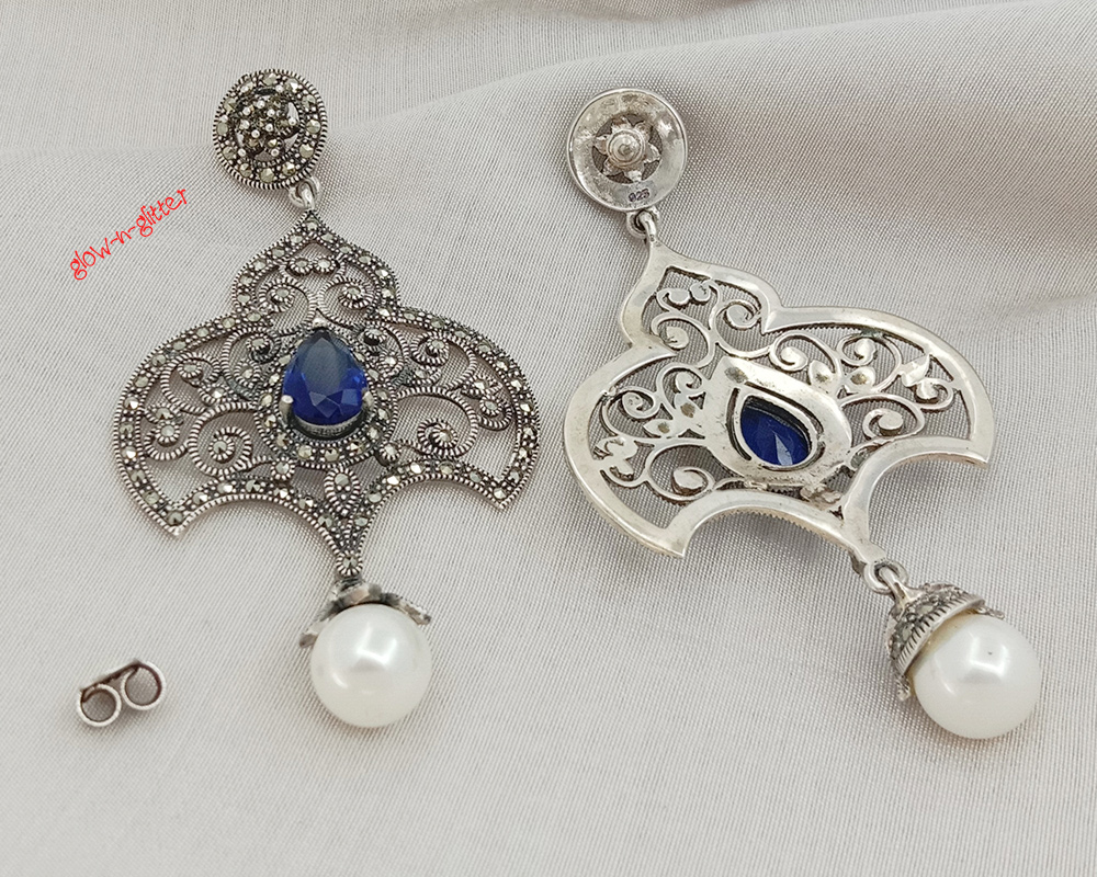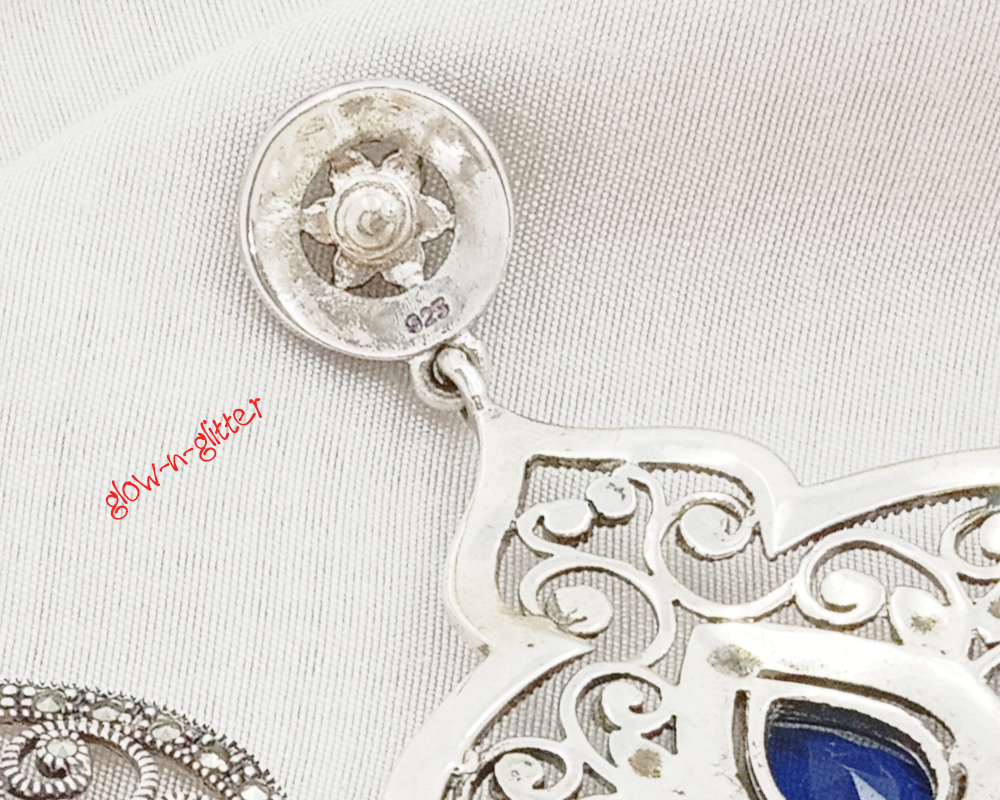 STERLING SILVER & MARCASITE BLUE DROP EARRINGS
