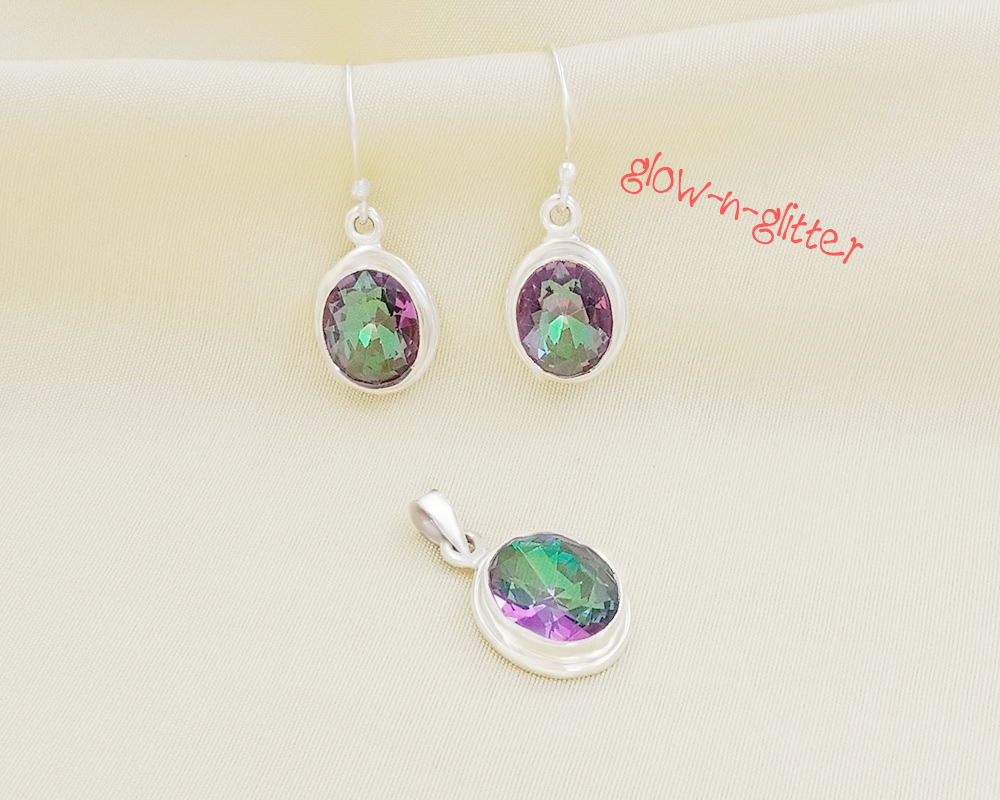 STERLING SILVER MYSTIC TOPAZ PENDANT EARRING SET