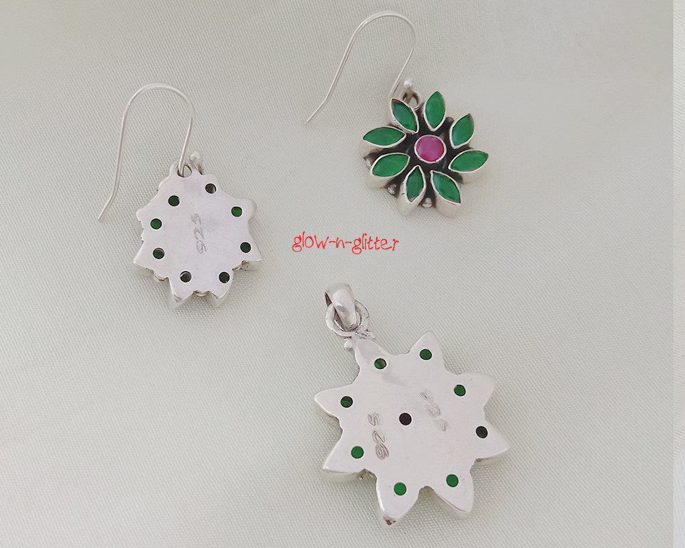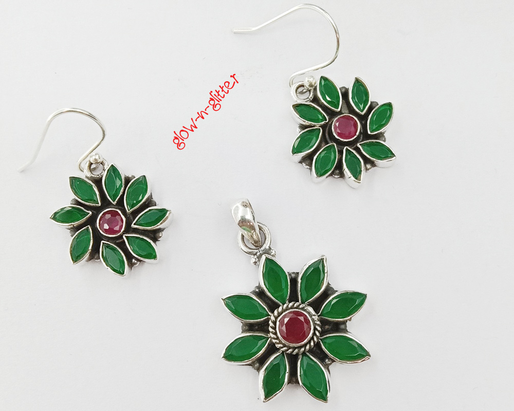 STERLING SILVER CUT STONE PENDANT & EARRING SET