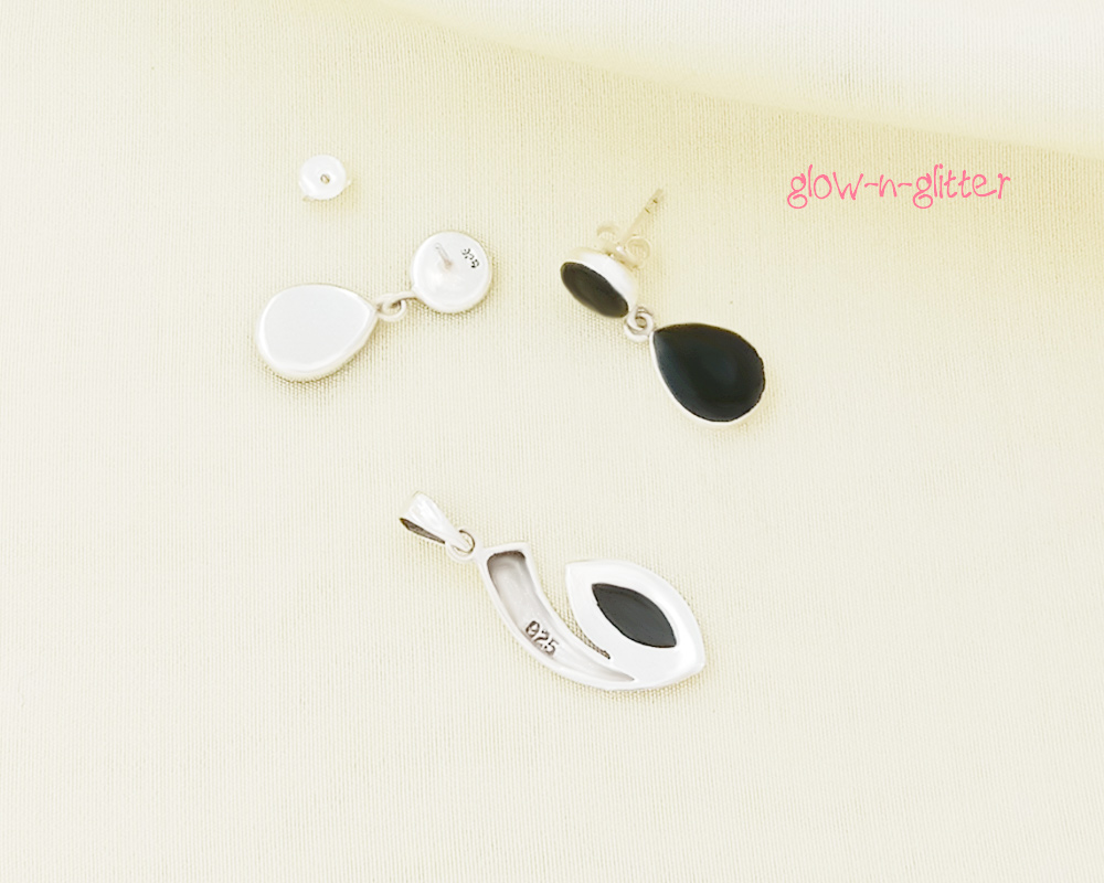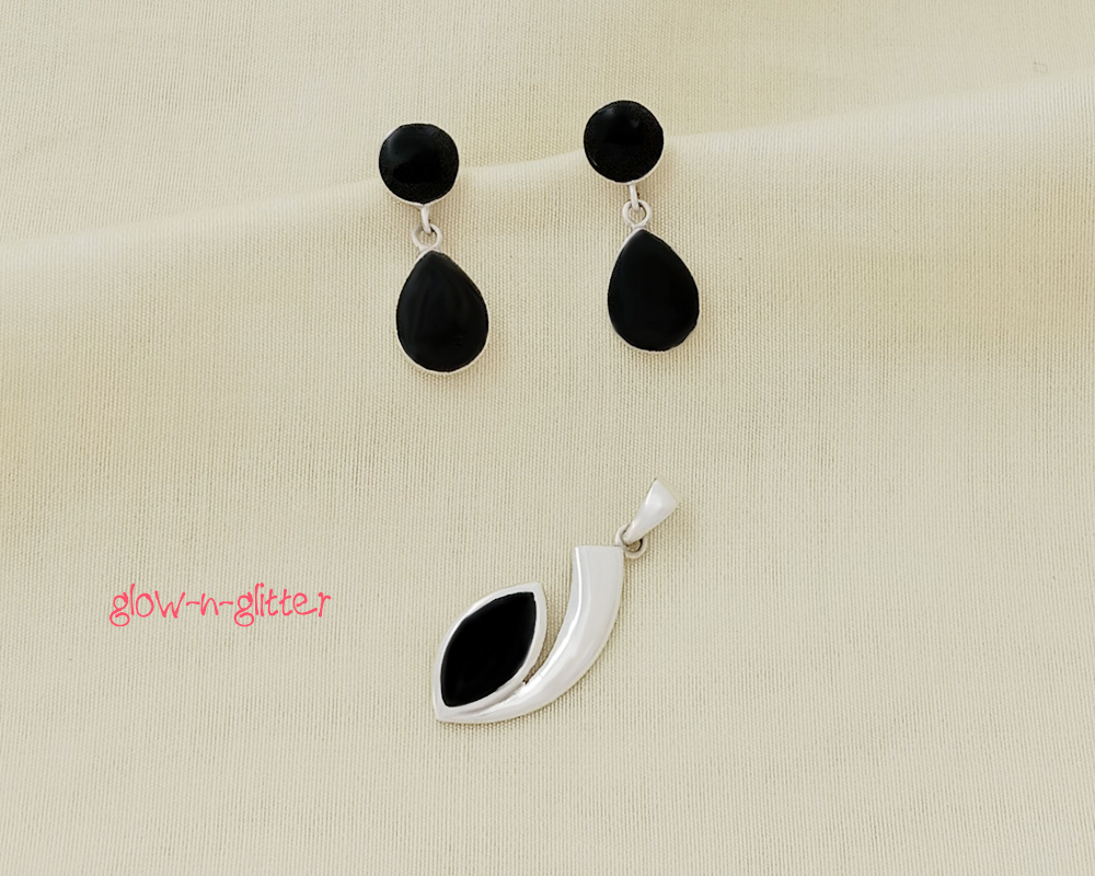 STERLING SILVER & ONYX PENDANT EARRING SET