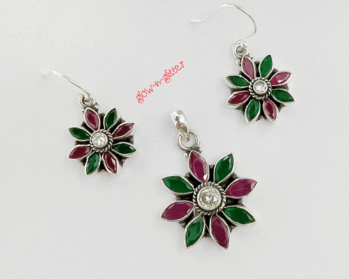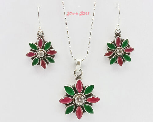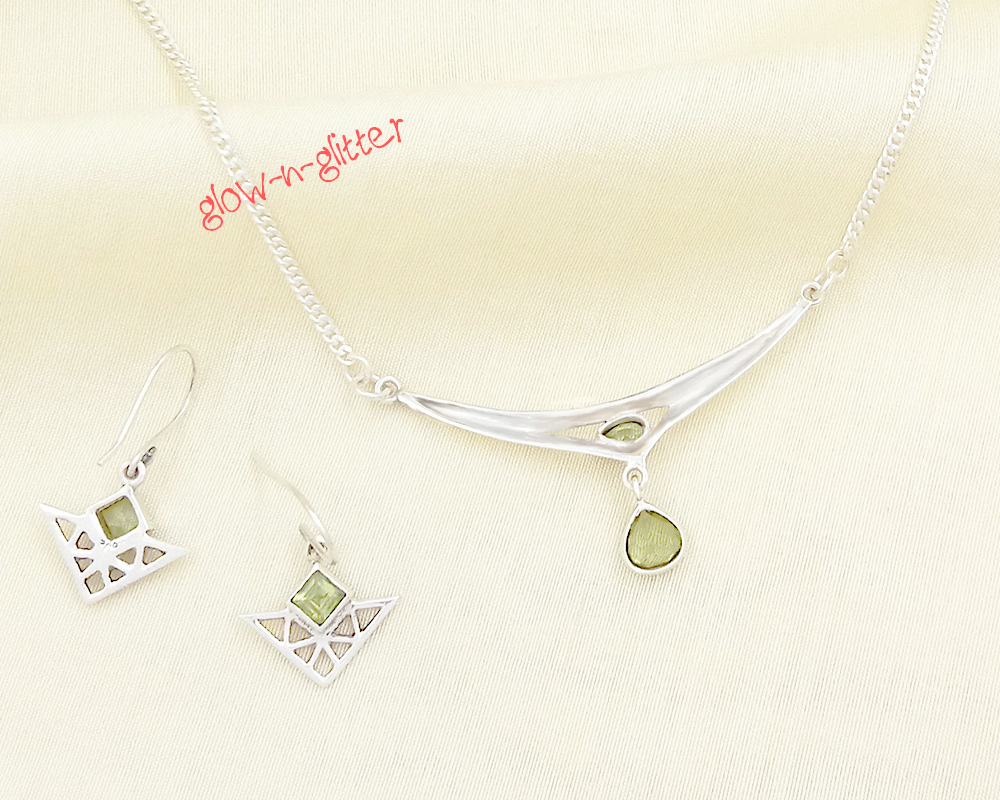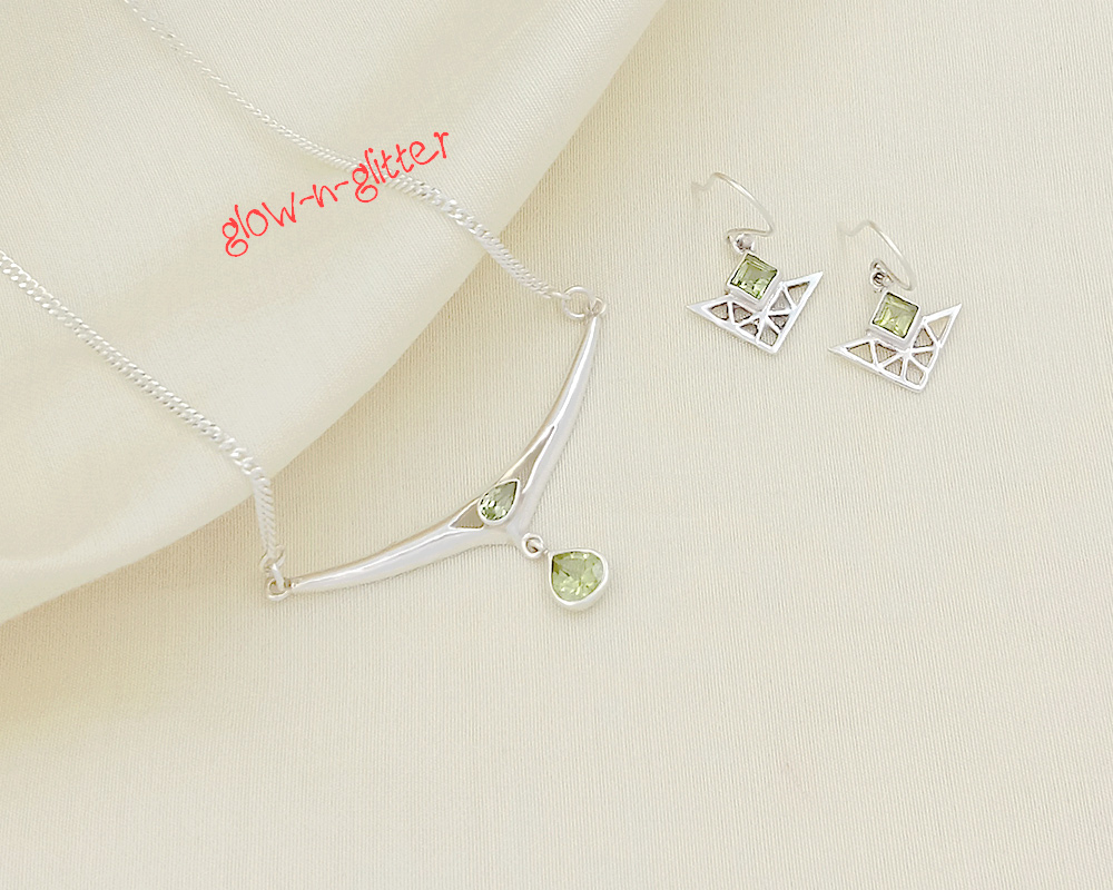 STERLING SILVER PERIDOT PENDANT EARRING SET