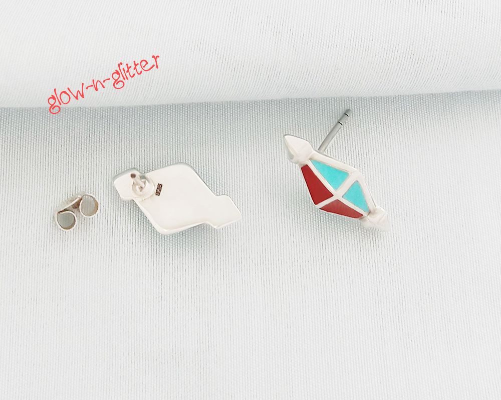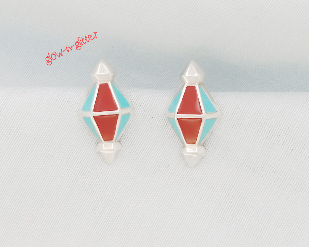 STERLING SILVER RED & BLUE DHOLKI EARRINGS