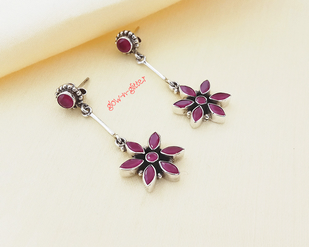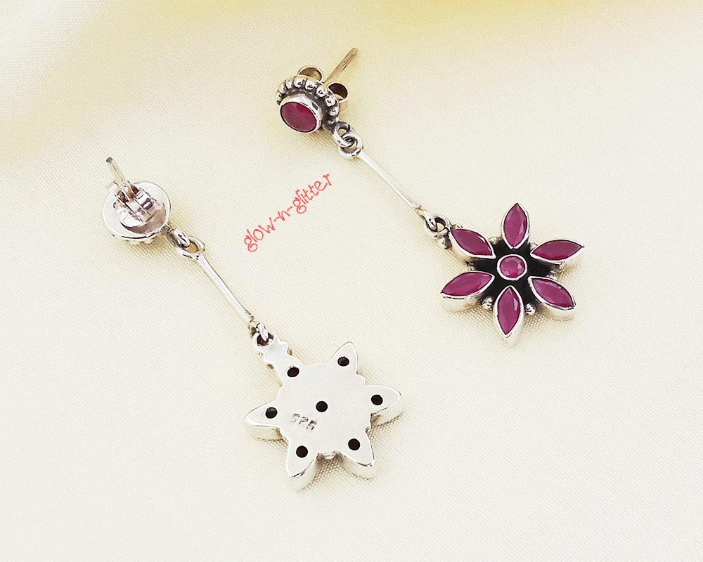 STERLING SILVER RED FLORAL DROP EARRINGS