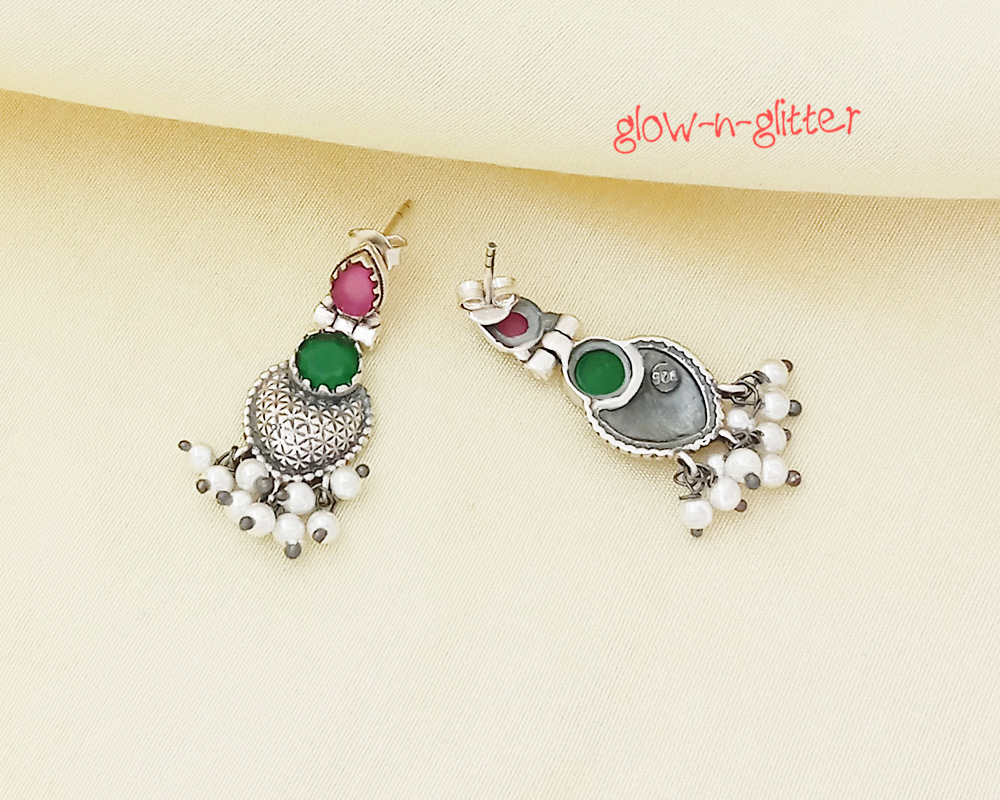 STERLING SILVER RED & GREEN EARRINGS