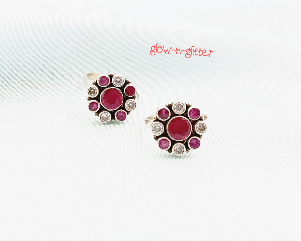 STERLING SILVER RED & WHITE TOE RING