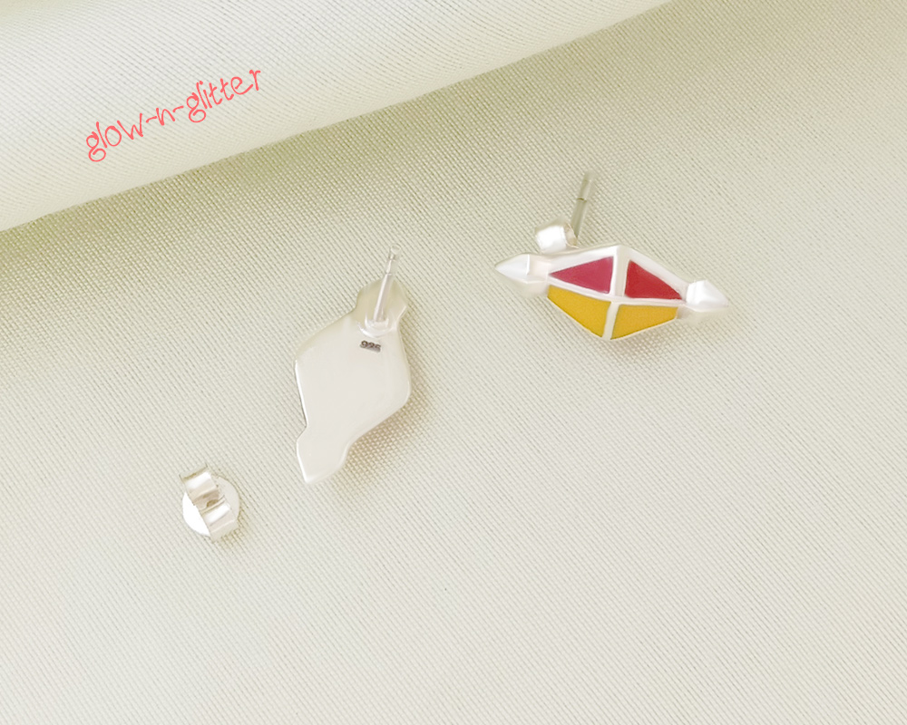 STERLING SILVER RED & YELLOW DHOLKI EARRINGS