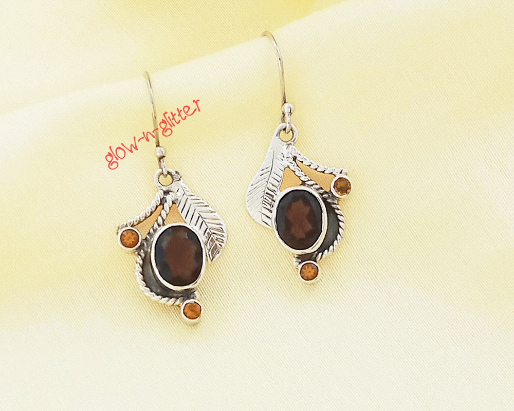 STERLING SILVER & SMOKY TOPAZ DROP EARRINGS