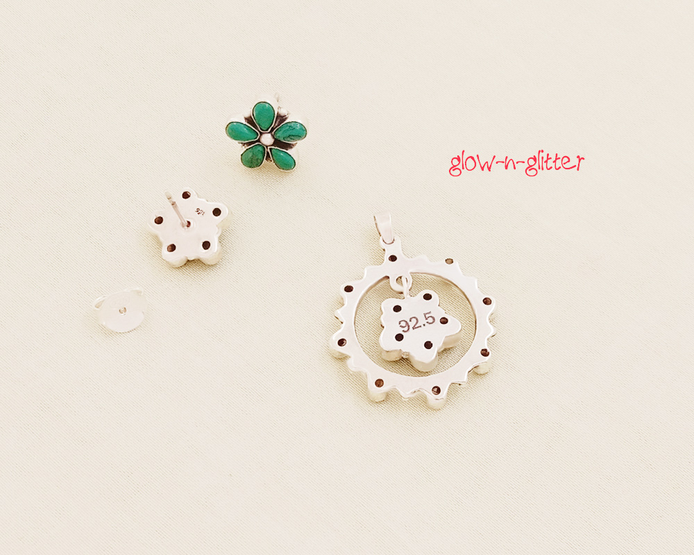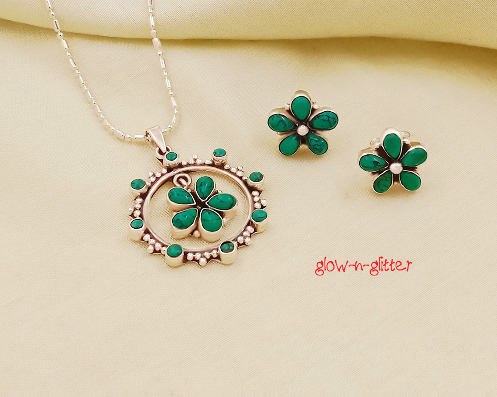 STERLING SILVER & TURQUOISE FLORAL CIRCLE PENDANT EARRING SET