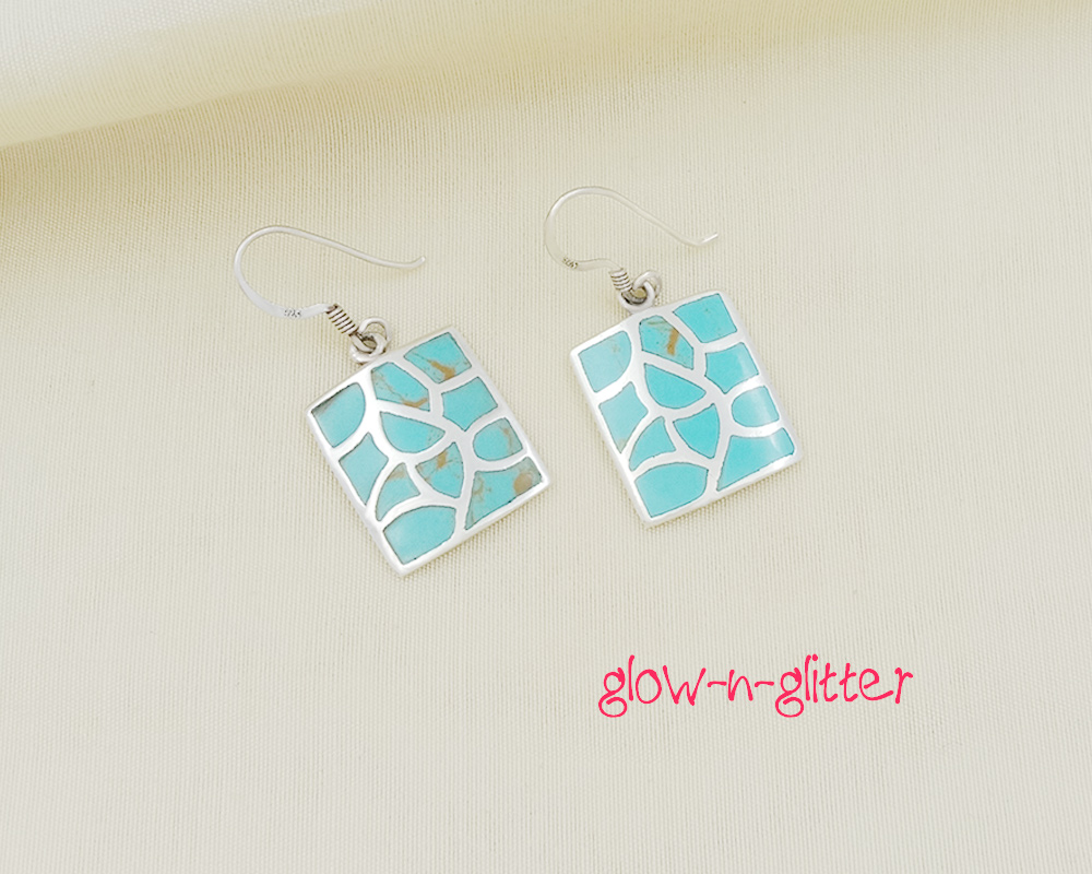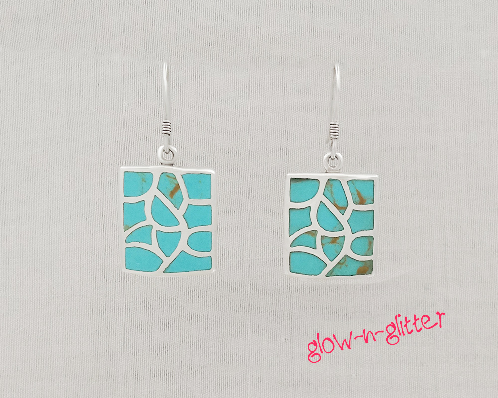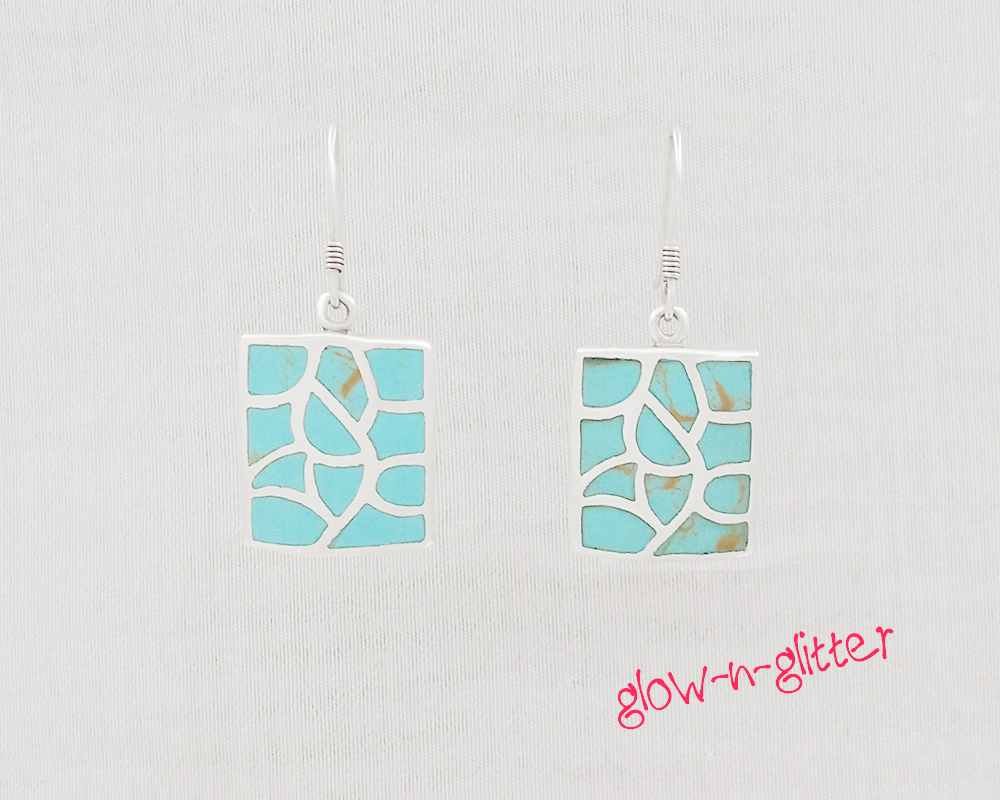STERLING SILVER TURQUOISE MOSAIC EARRINGS