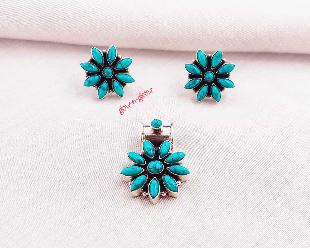 STERLING SILVER & TURQUOISE PENDANT EARRING SET